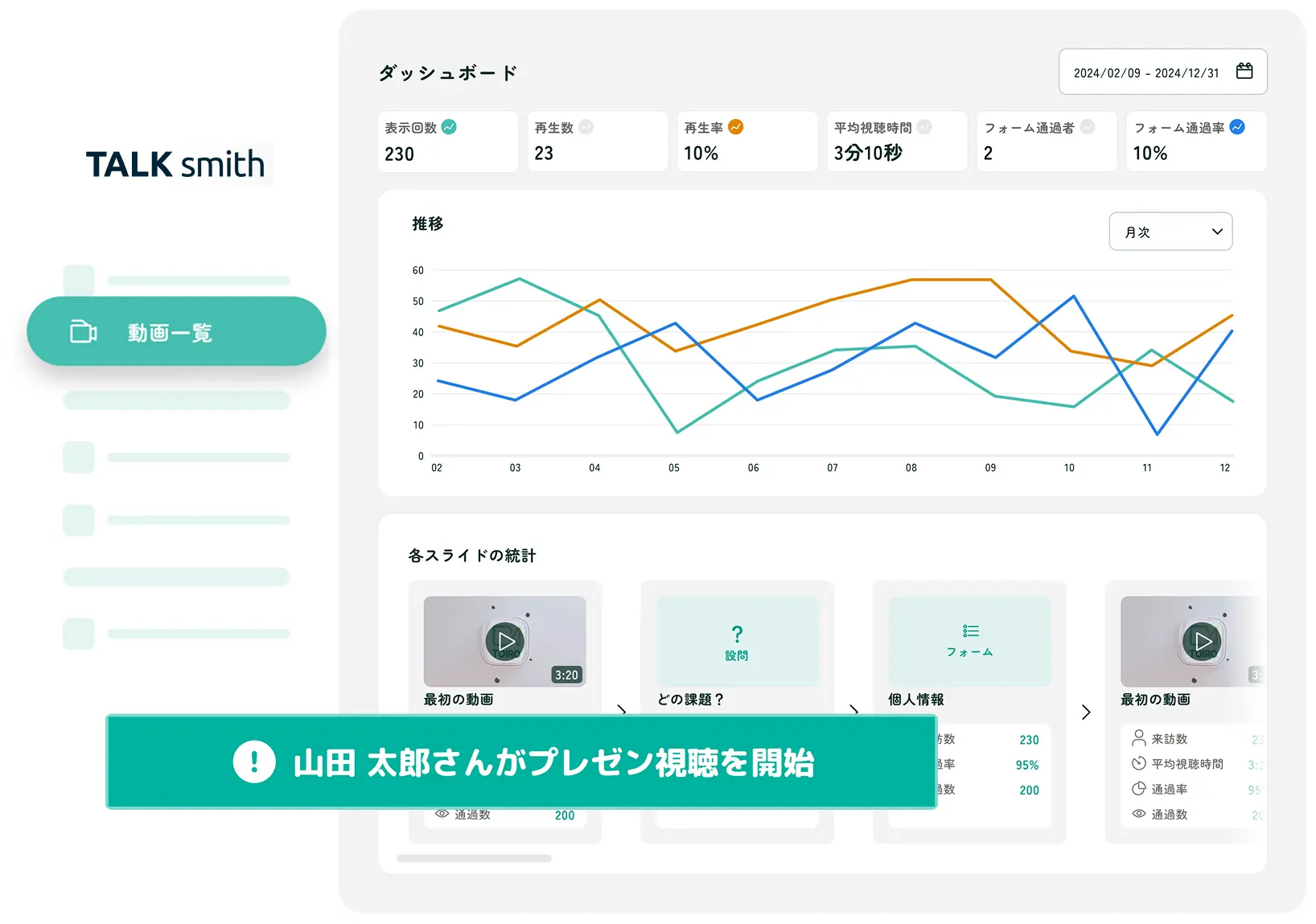 Video Agentでは、視聴者がどの部分を見たか、どの設問をクリックしたかなど、詳細なデータを取得できます。この情報を基に、顧客の関心を深く理解し、次のアクションに活かすことができます。データを活用することで、パーソナライズされた提案やアプローチが可能になります。